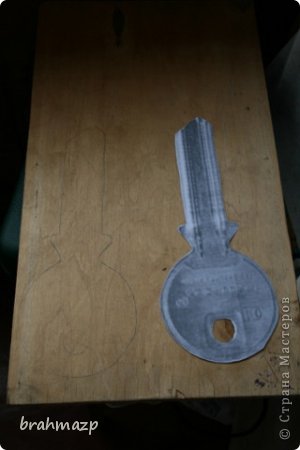 Вырезаем ключ. Прикладываем к фанере и обводим карандашом